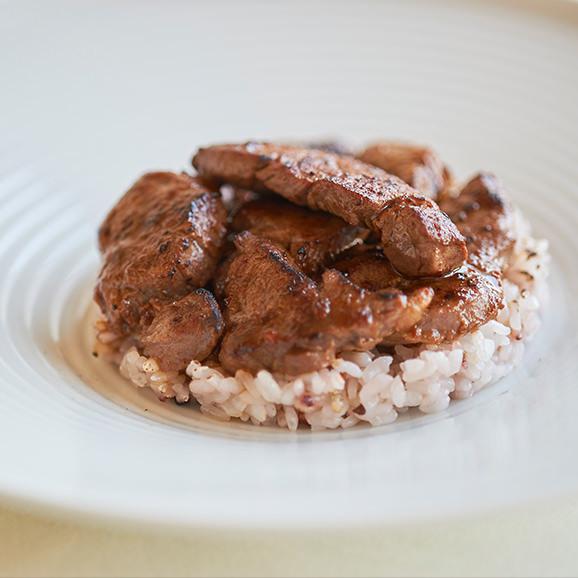レディクションと呼ばれる特に重要な技法を用いて作ったナベノソースにバターの香り豊かなフレンチスタイルのステーキが絡み合います。ご飯も雑穀米とすることで豊かな食感でかつ健康的。ステーキに非常にマッチします。一般的なステーキ丼とは一味違う“ステーキライス” を是非お試しください。